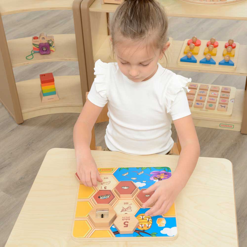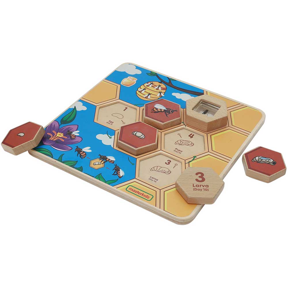 Ask children where the honey comes from. We wouldn't have honey without honey bees. Now we can closely look at the real bee specimen of a honey bee and learn about different life stages of a honey bee with this handy learning board. Children can see how it grows from an egg, to a larva, and to a pupa before finally emerging as a mature adult.