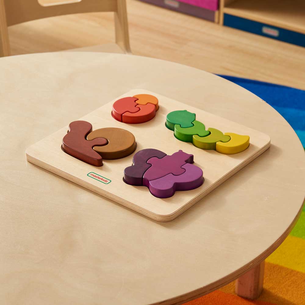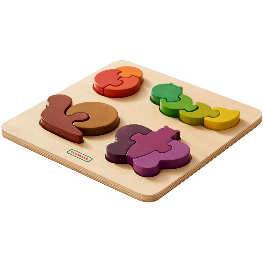 This self-correcting insect themed jigsaw puzzle encourages children to lock each wooden piece together by trial and error until they realise they are making a lady bug, a caterpillar, a snail or a butterfly. Set includes 12 chunky Beech wood jigsaw pieces and a wooden tray.