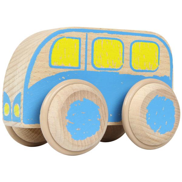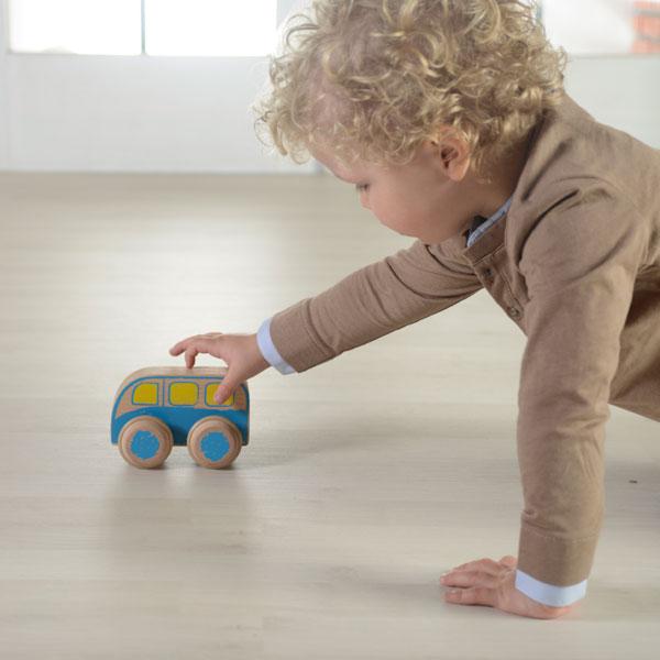 Adorable and natural looking Crayon-on-wheels wooden toy cars made of sustainable European beech. A good fine motor skills training toy for little ones who starts to grasp and push objects.