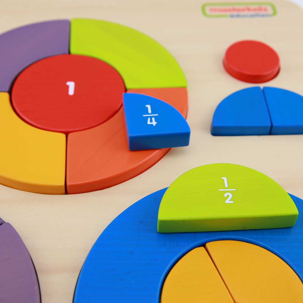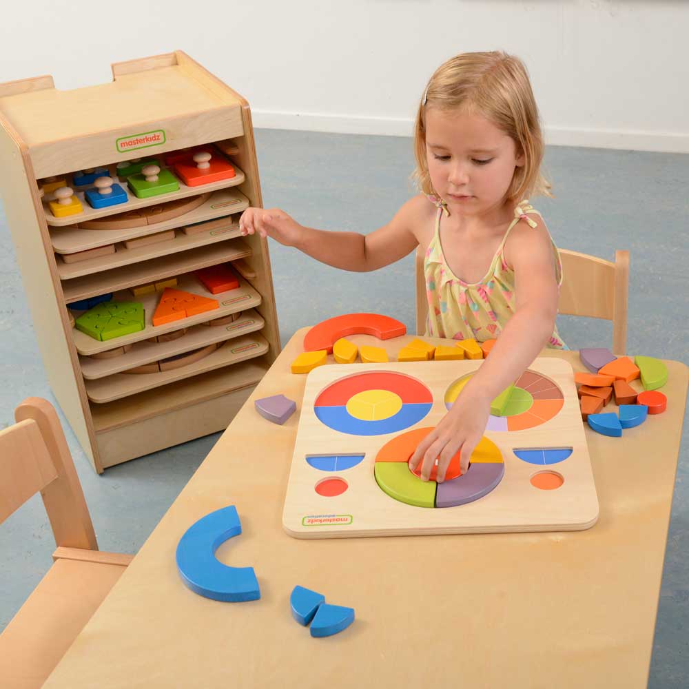 This set of colourful hardwood components is all based around the circle. There are some whole circle pieces and a large variety of different segments in different colours. Pieces are large enough to stand on their edges so are ideal as pieces for use in open-ended creative play. As segments they can be pieced together to make completed whole circles or used in conjunction with the Masterkidz Mirror Tray to create interesting patterns and reflective symmetry.