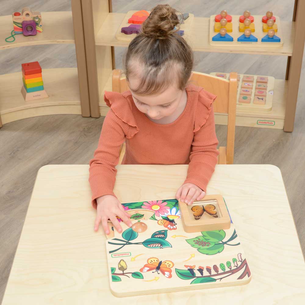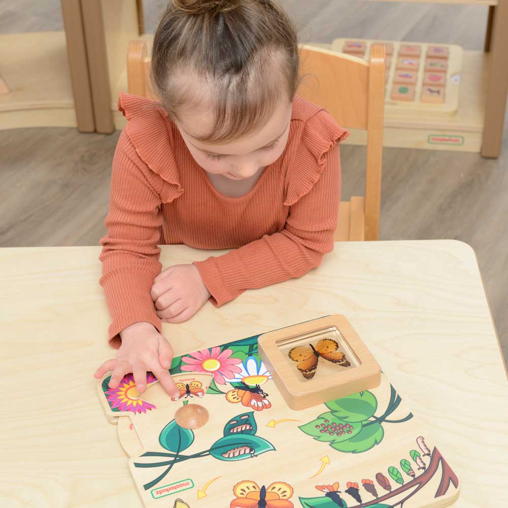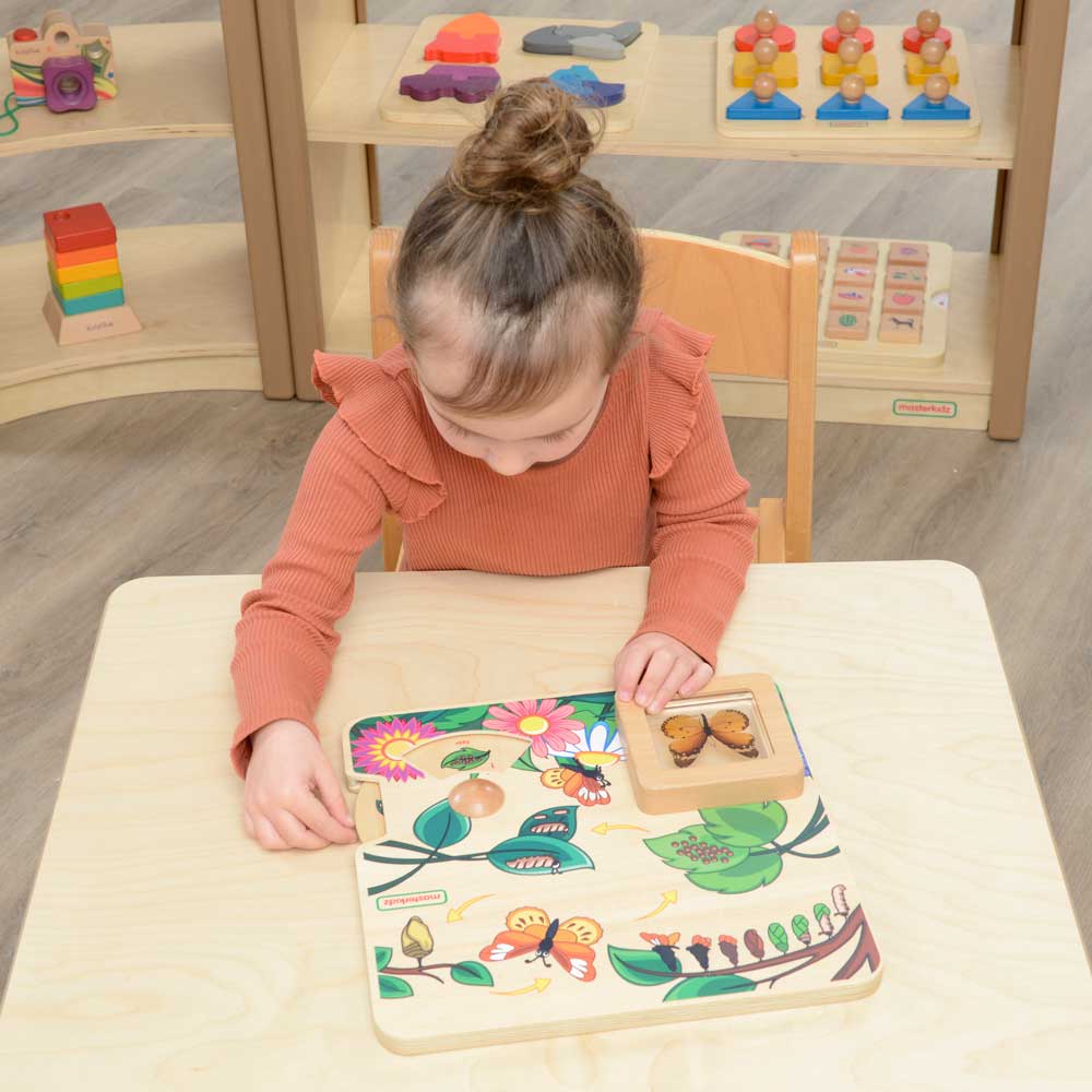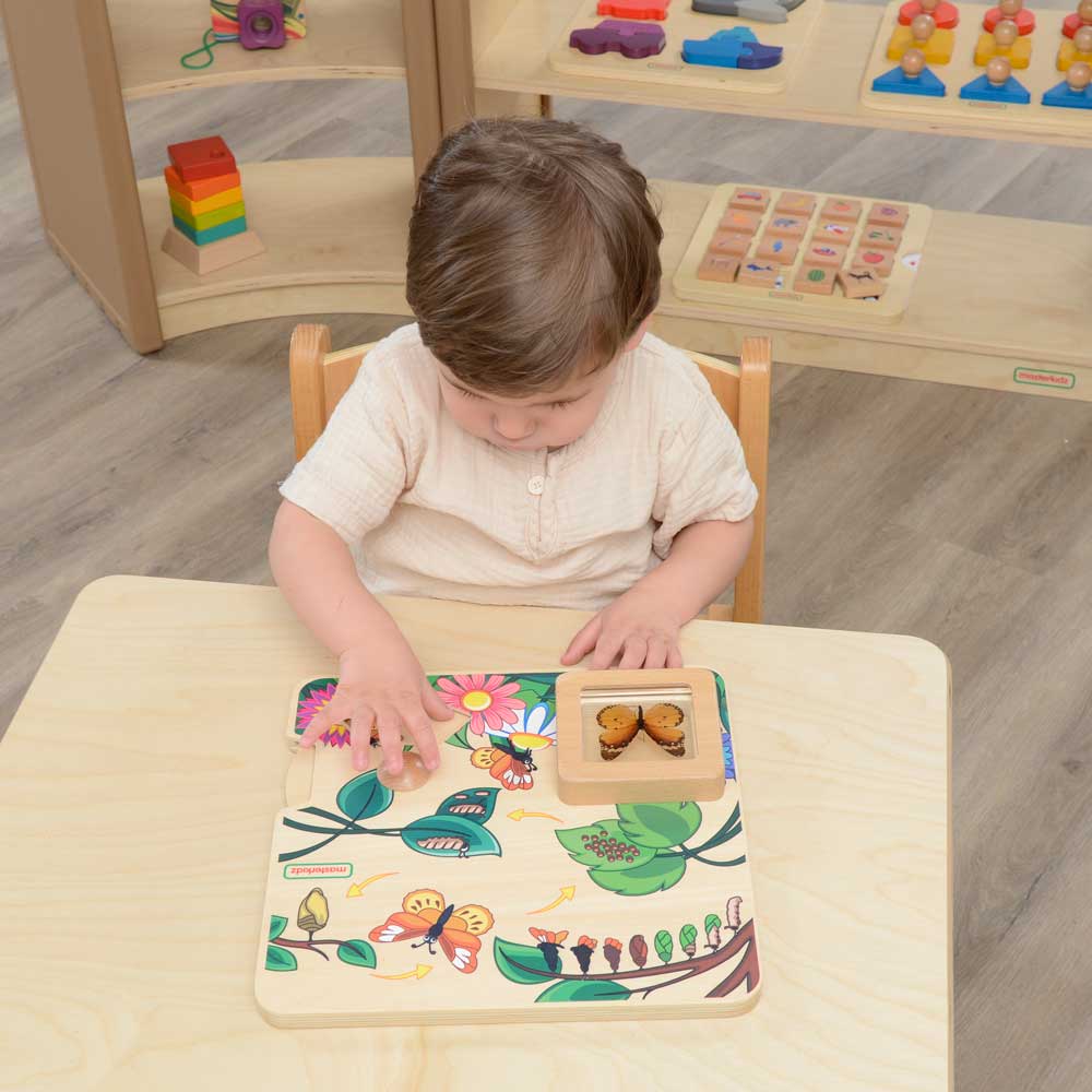 Know a child who's curious about growth of a butterfly? This is the perfect handy learning board with real butterfly specimen. Different life stages of a butterfly is visually illustrated on the board. Children can also spin the butterfly life cycle wheel on the right to strengthen their understandings on sequence of butterfly life stages.