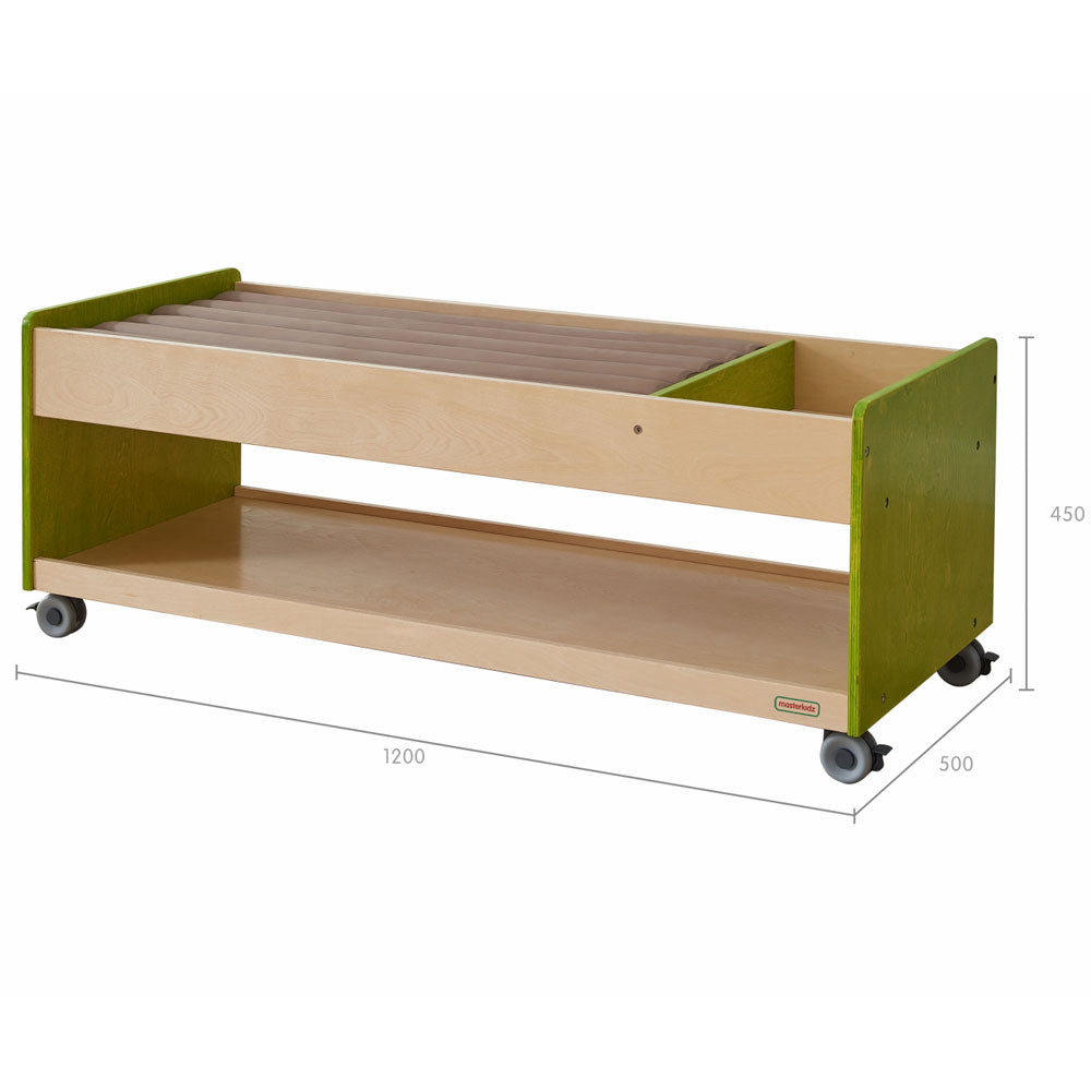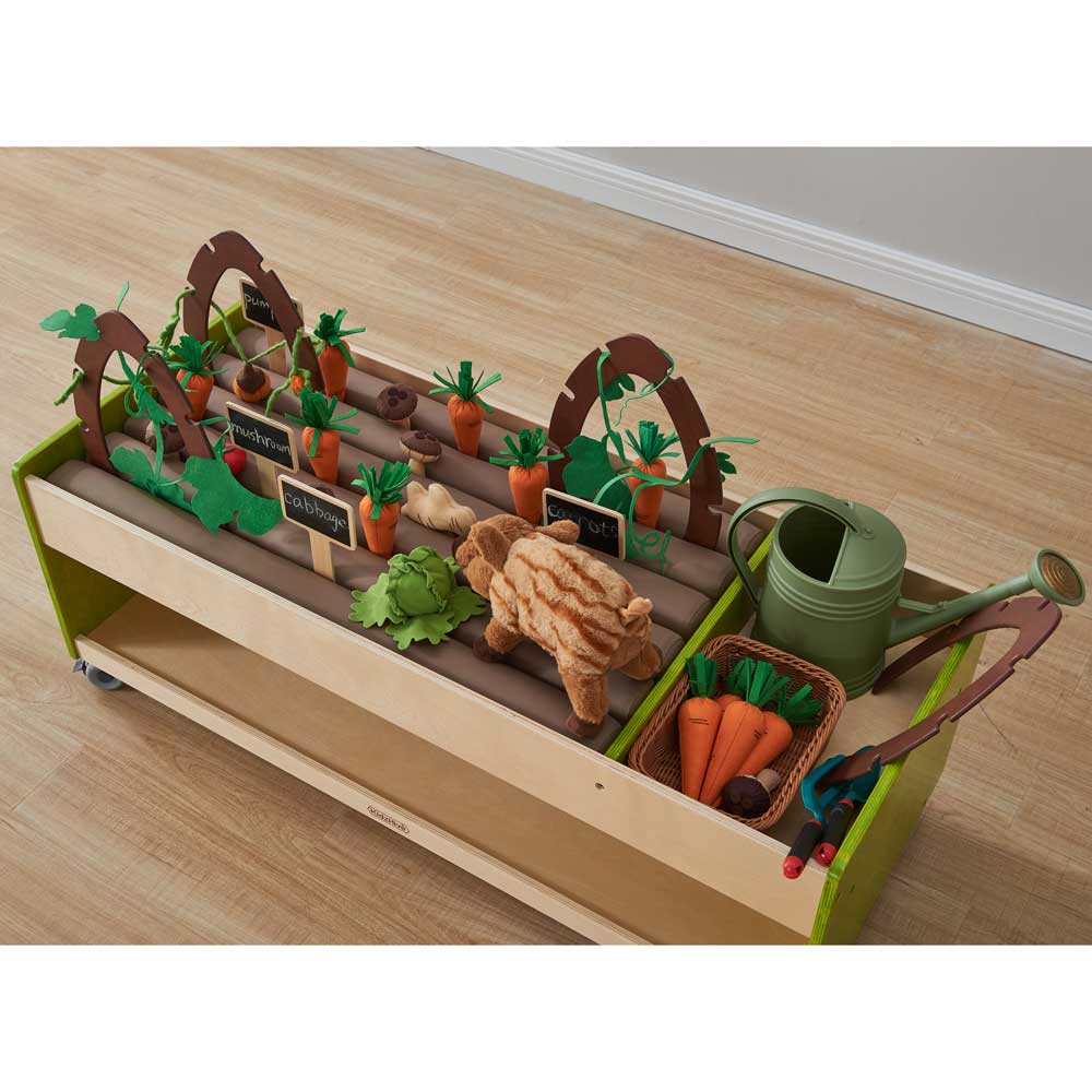 This low level trolley can be used in a variety of ways. As part of the farm set it can used as a storage trolley or as a growing trough. Farmland includes soft fabric tubes, providing a realistic looking soil base, play food can be planted in it and harvested when ready. When playtime is over, gardening play set, farming accessories and more can be stored on the shelves within for easy access next time. Pair with other pieces in this collection for happy farm or use alone.