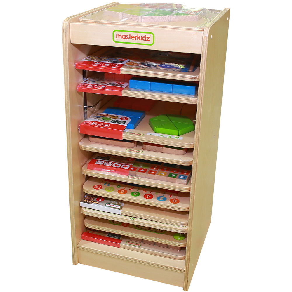 A sturdy Handy Learning Board storage rack holds up to 10 boards with an optional castors base(ME08725). A board can also be placed on top of the rack making it a movable play center.