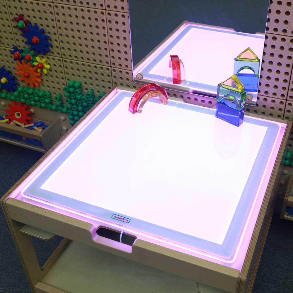 This portable colour LED light panel provides colour changing feature plus many other teacher-oriented functions. The patented remote controller provides direct colour buttons for many commonly used colours. 11 colour preset buttons allow teachers to "store" any specific colours. There are also 3 pairs of RGB adjusting buttons allowing users to make minor additions or subtractions of RED, GREEN or BLUE on the existing colour. Preset modes: looping of rainbow colours and thunder storm which can be used during story telling sessions. This light panel also allows different types of light-related learning activities such as colour mixing, creativity development and many other STEM learning activities. Children can explore colour mixing by placing the coloured shapes on top of one another. Beautiful effects can be created when light shines through different materials such as leaves and paper.