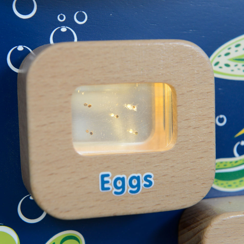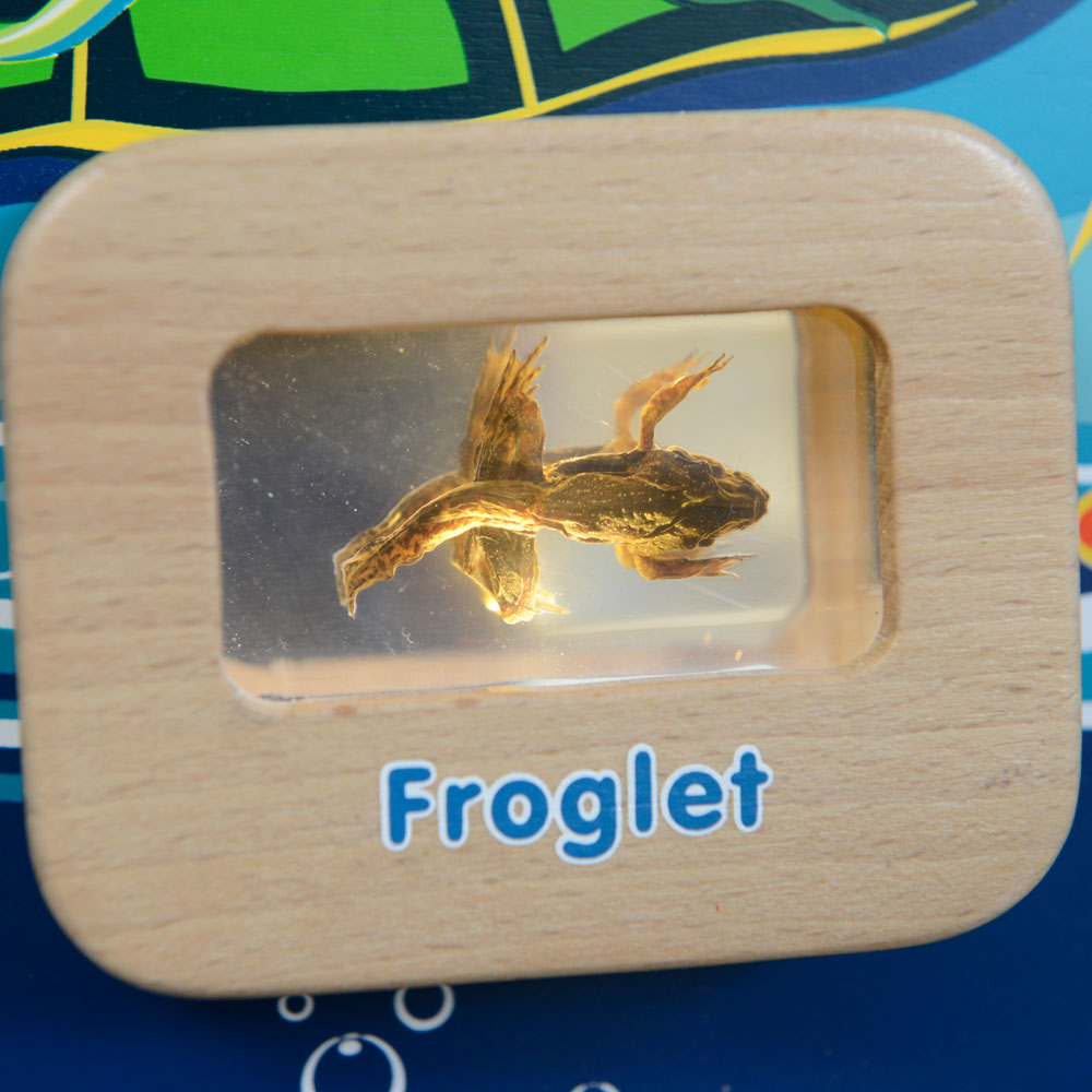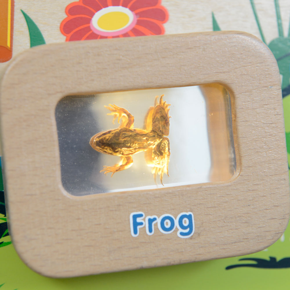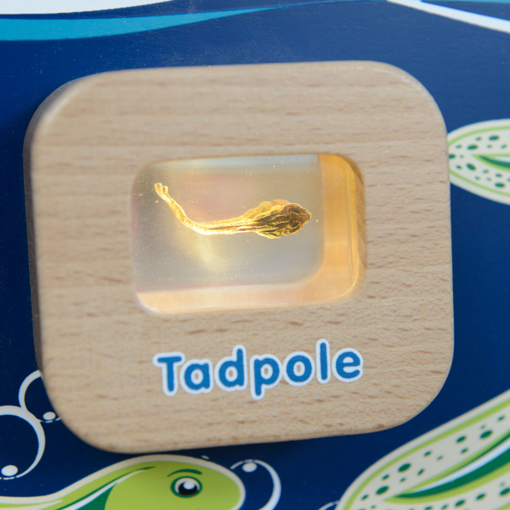 The metamorphosis of the tadpole into the frog has been one of nature’s greatest wonders. This is a frog life-cycle learning board containing real life specimens encapsulated in clear acrylic blocks which allow children to have closer look. The 4 stages including Eggs, Tadpole, Froglet and Adult Frog can be seen and discussed with the added benefit of switches to light up each one in turn. Once lit-up, the specimens reveal all of their hidden secrets and children will be drawn in to examine them in greater detail. As well as the visual brilliance of these boards, children will also benefit from the rich words and language that surrounds these wondrous timelines. Batteries are not included.