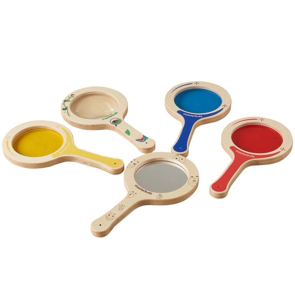 This magical set comprises of 5 different handheld paddles, each with a different light property which will excite, engage and amaze children of all ages. It will provide hours of scientific observation and discovery and give a different perspective on the world being seen. Three of the paddles have colourful transparent lenses in the primary colours of red, blue and yellow. Held to the eye, everything in the world around the child changes colour. Hold two together to the eye and a new colour is created. A double-sided plane mirror allows children the chance to see, create and better understand their own expressions and a magnifying lens, for the close inspection of minibeasts (with a 3x and 5x lens) completes the set. Ideal when used in conjunction with a Masterkidz light panel. A must-have general science exploration resource.