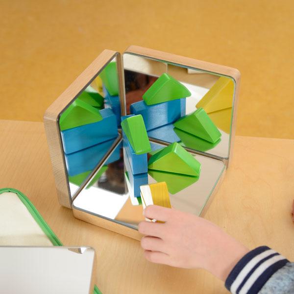 A set of 4 individual mirror panels for children to learn about with reflections. Different combinations and patterns can be made for different effects. This can be used with Translucent Colour Blocks (ME06806) and Mirror Block and Dry Erase Block Set (ME04017).