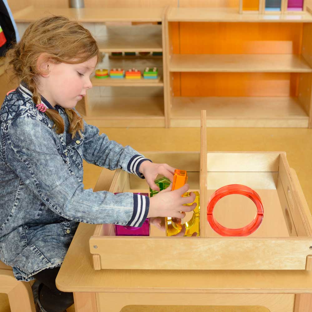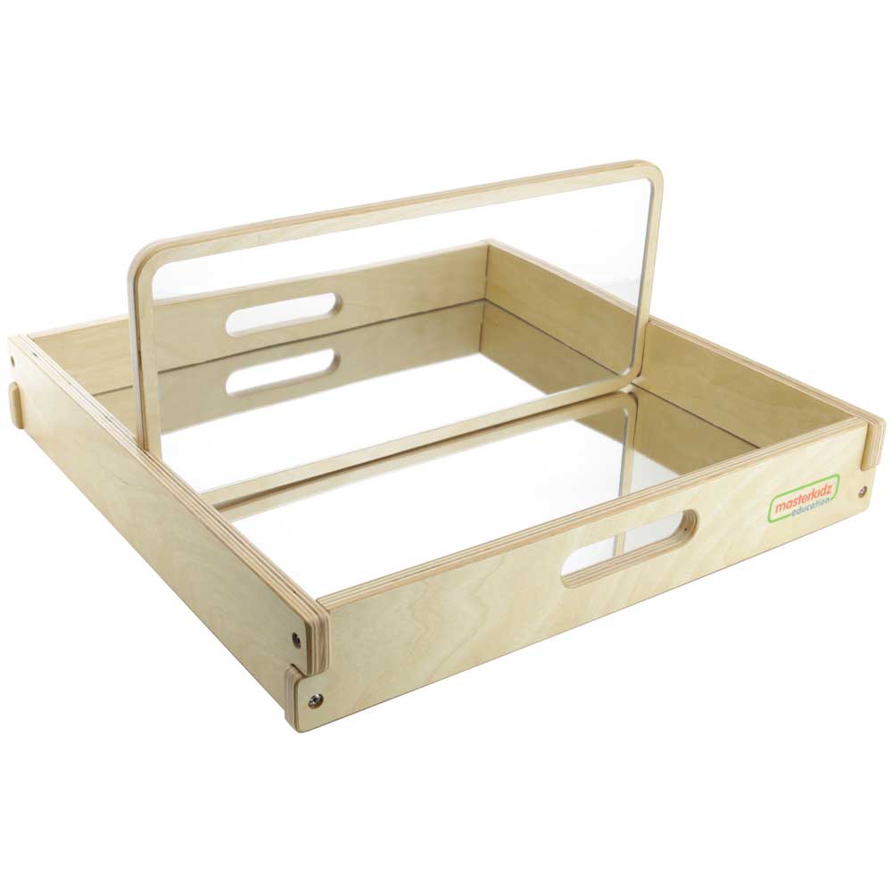 The Mirror Tray provides an excellent open-ended arena for the exploration of light, reflection and symmetry and can be placed upon a table top where the children can easily see things reflected. Made from scratch proof acrylic the surface will stand the test of time. Children will want to experiment with shapes and to explore the effects. Shaped blocks with patterns on them (such as the Masterkidz 24-piece colour block set) are the ideal accompaniment to this set providing pieces that are arched to form a circle or patterned to create a stunning reflective effect. Using the 4-piece mirror blocks adds to the reflective potential of this wonderful resource. A vertical mirror can be placed into the tray to create compartments for several children working on either side of the tray at once to create three dimensional reflections.