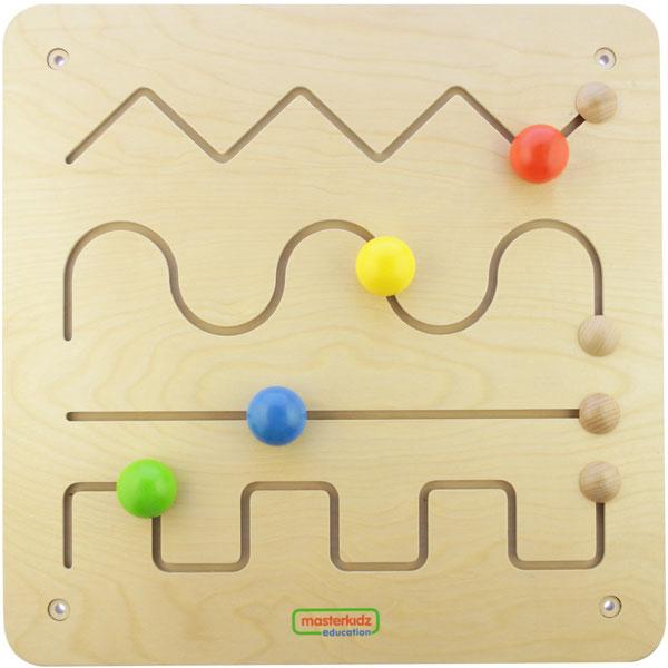Early writing skills are increased and fine motor skills developed with this sliding maze game. This item can be used either mounted to a wall or used with the Masterkidz Free-standing Painting Window.