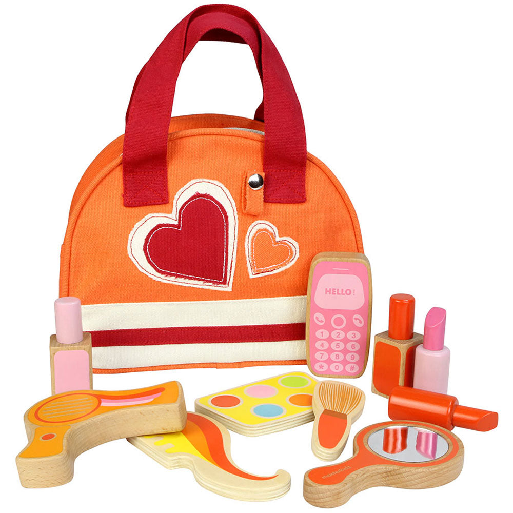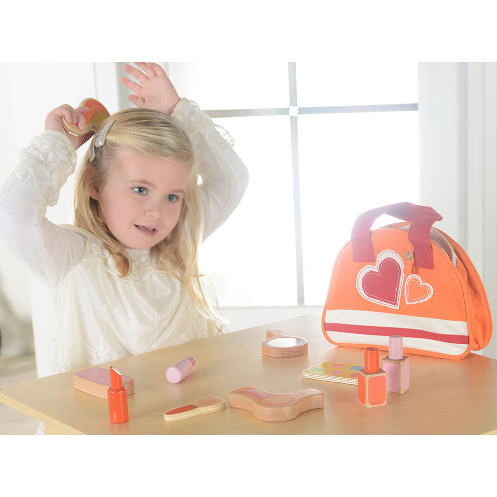This adorable wooden Beauty Kit includes a make-up set and a hair-styling kit. Together with the beautiful canvas carrying case, your little stylist will have big fun with her friends. An ideal preschool and educational toy.