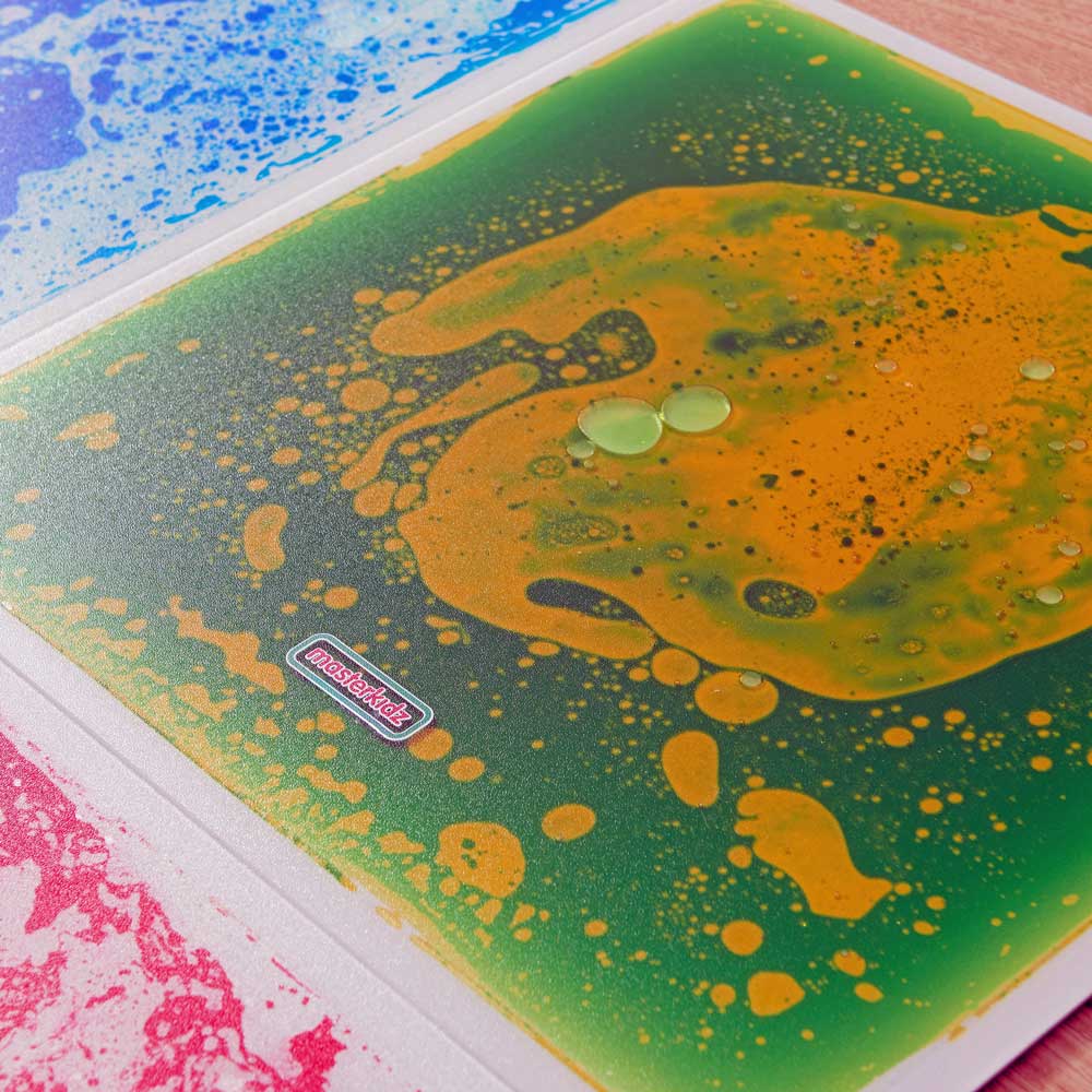 - When pressure is applied the squidgy liquid moves to create wonderful shapes and patterns