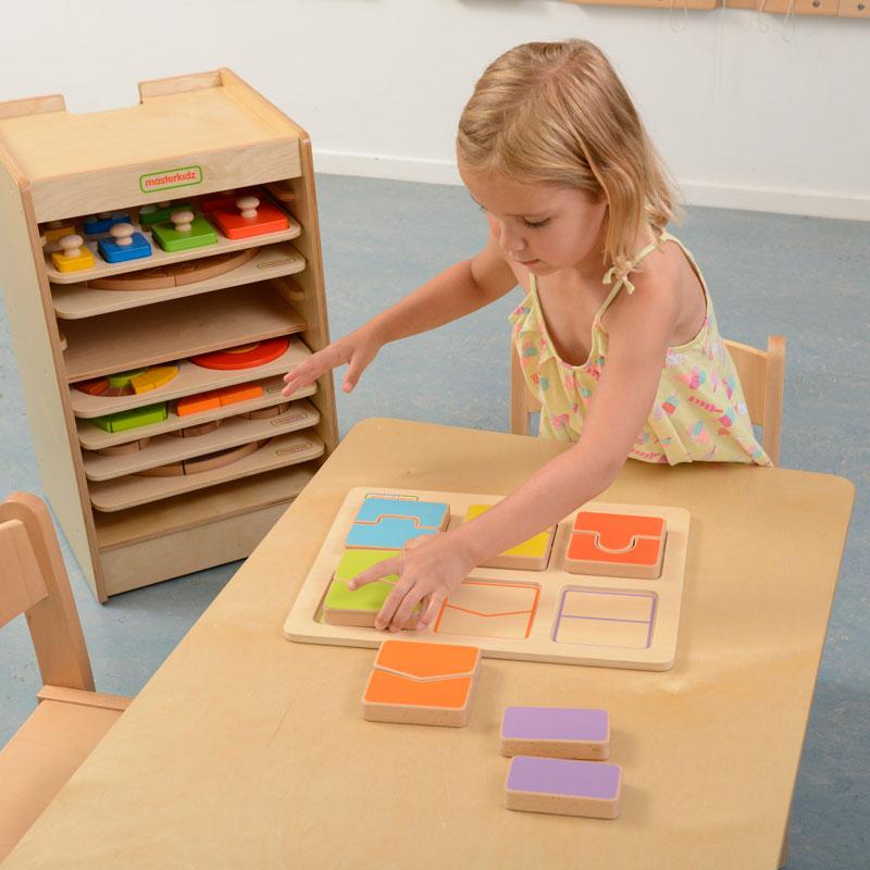 Children develop early logic skills with the shapes puzzles. Children will also develop colour recognition and shape matching with the 6 shapes that fit onto the coloured outline board.