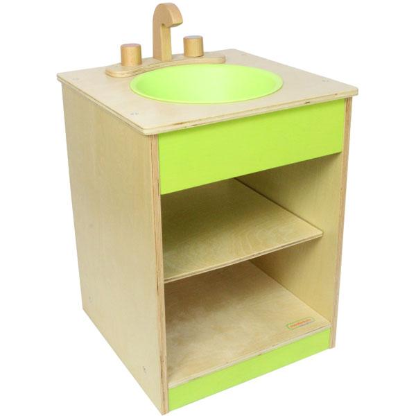 Includes wooden mixer tap and plastic green bowl. Made from Russian Birch plywood. Size 40 x 40 x 52cm high