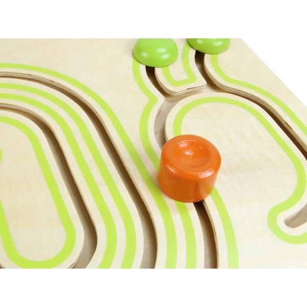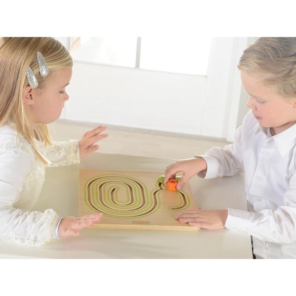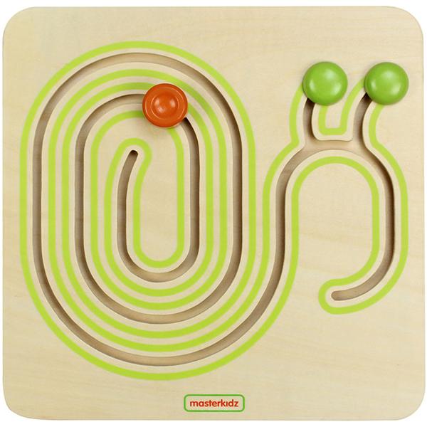 Adorable snail-shaped sliding board game encouraging motor skills training when the kids move the wooden blocks along the circular tracks.