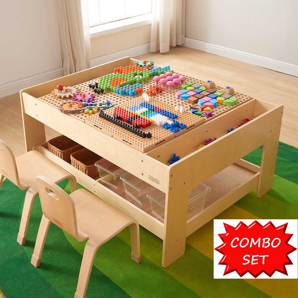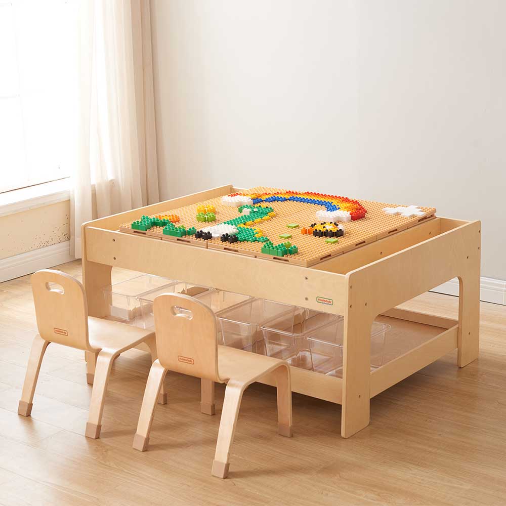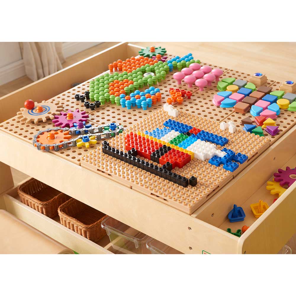 The large STEM table is 52cm high with an activity and storage surface measuring 113cm x 88cm