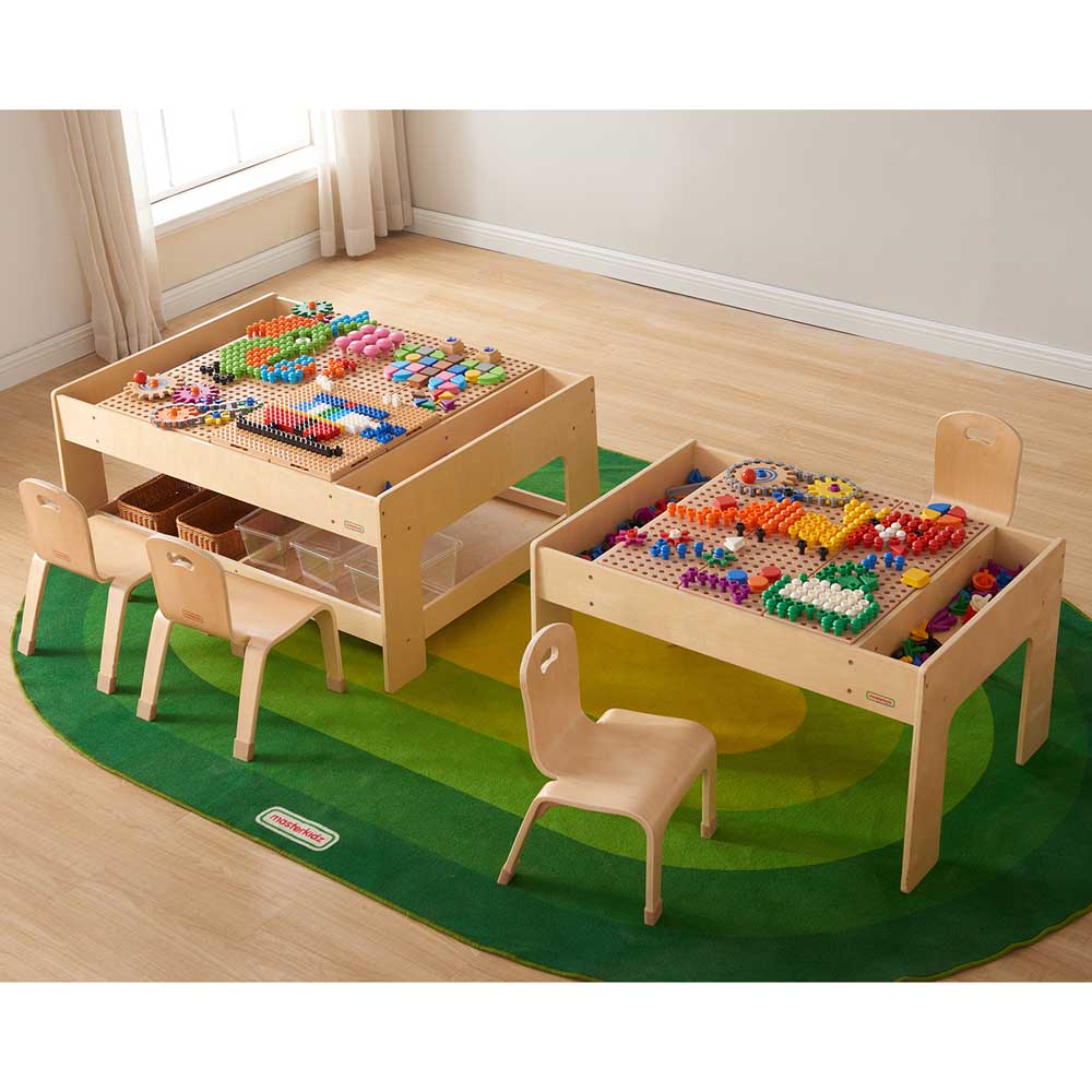 With numerous large format push-in STEM resources available (pegs, shapes, tiles, building bricks), the Activity Table present the perfect area for toddlers to build, explore and discover. Ideal for the development of their fine motor skills and to experience STEM for the first time.