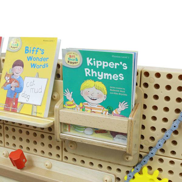 The Stem Wall Caddy attached to the STEM Wall adds a convenient storage point for flashcards, books etc.