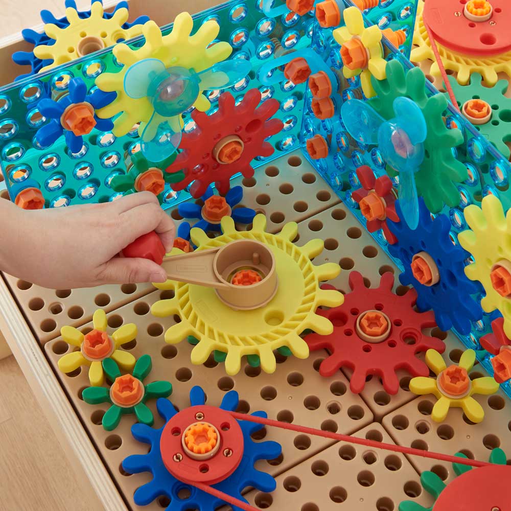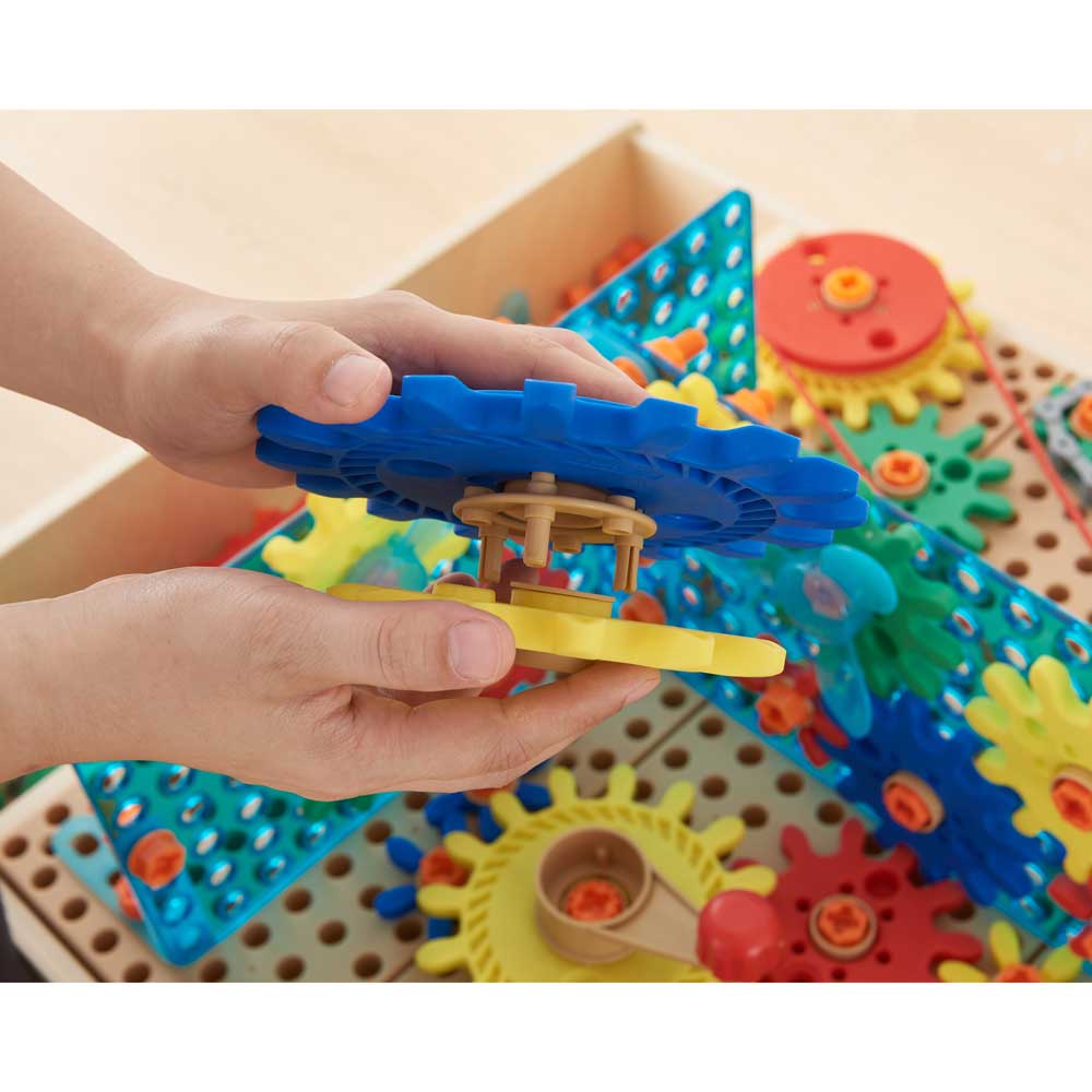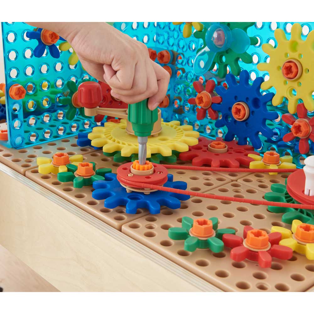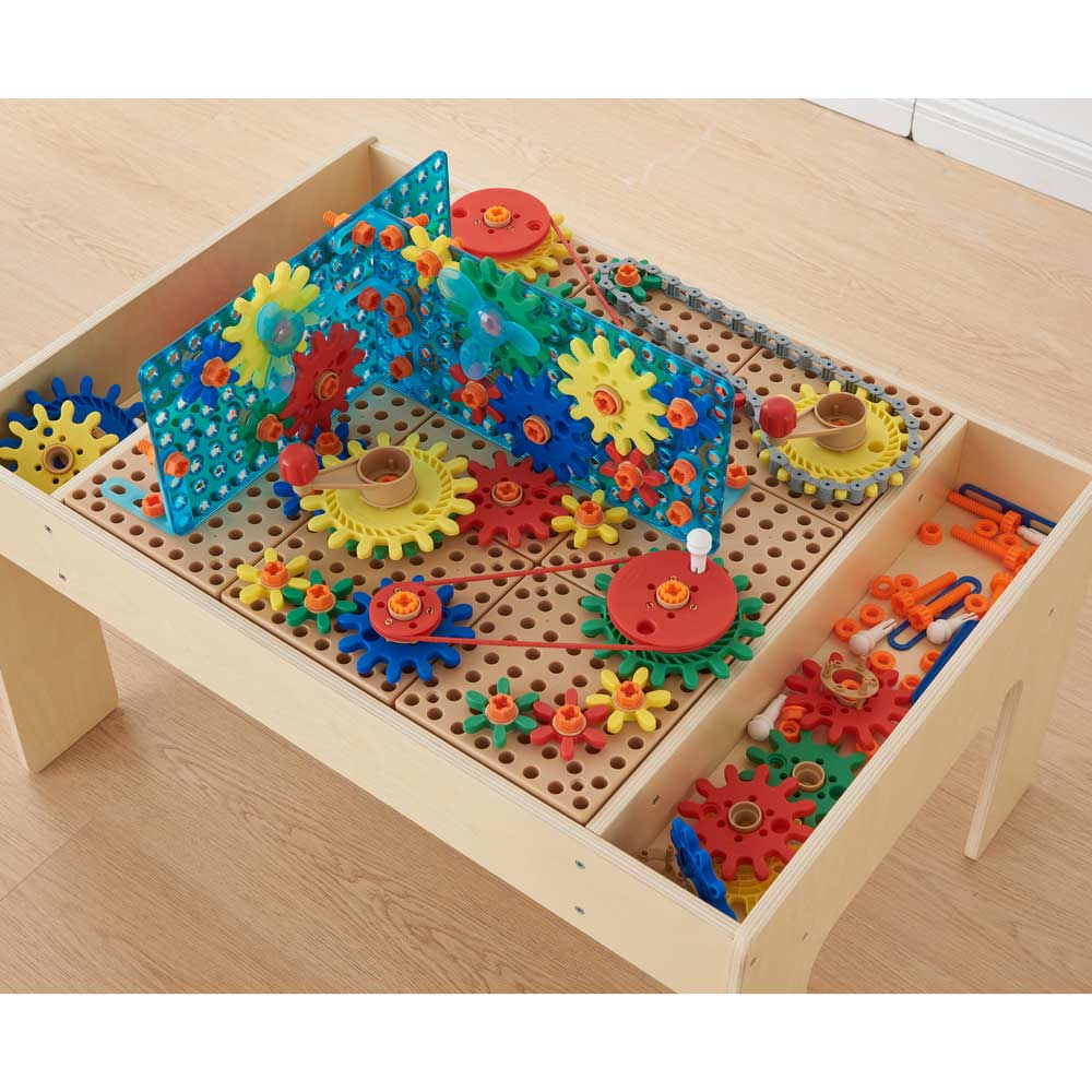 This 198 piece set provides a huge selection of components to encourage children to build and make their own mechanical devices. They can simply fix components to any STEM Wall, trolley or table in open discovery play adding pieces to see what happens. There are 34 gears in different sizes and some with a wind handle so they can be the driver of other interconnected gears. There is a drive chain, 2 pulley belts, 4 pulleys (in two sizes) and a cage connector to enable pulleys to be connected together, gears to be connected together or gears and pulleys fixed to each other. In addition, there are 2 panels (200mm x 400mm) with brackets to connect them to a STEM Wall providing another surface which can be set at 90 degrees to create mechanical systems in 3 dimensions! There are easily enough components in this set for an entire class or to extend the possibilities of a whole school resource towards even greater STEM possibilities.