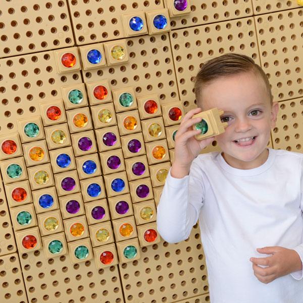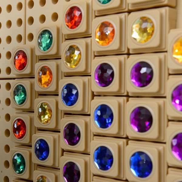 The gem stone block set consists of 72 colourful gems in 6 colours. Children enjoy using these blocks to create their own designs and patterns. Plugging and unplugging the gem stone blocks onto the STEM Wall will help children develop colour recognition and motor skills.