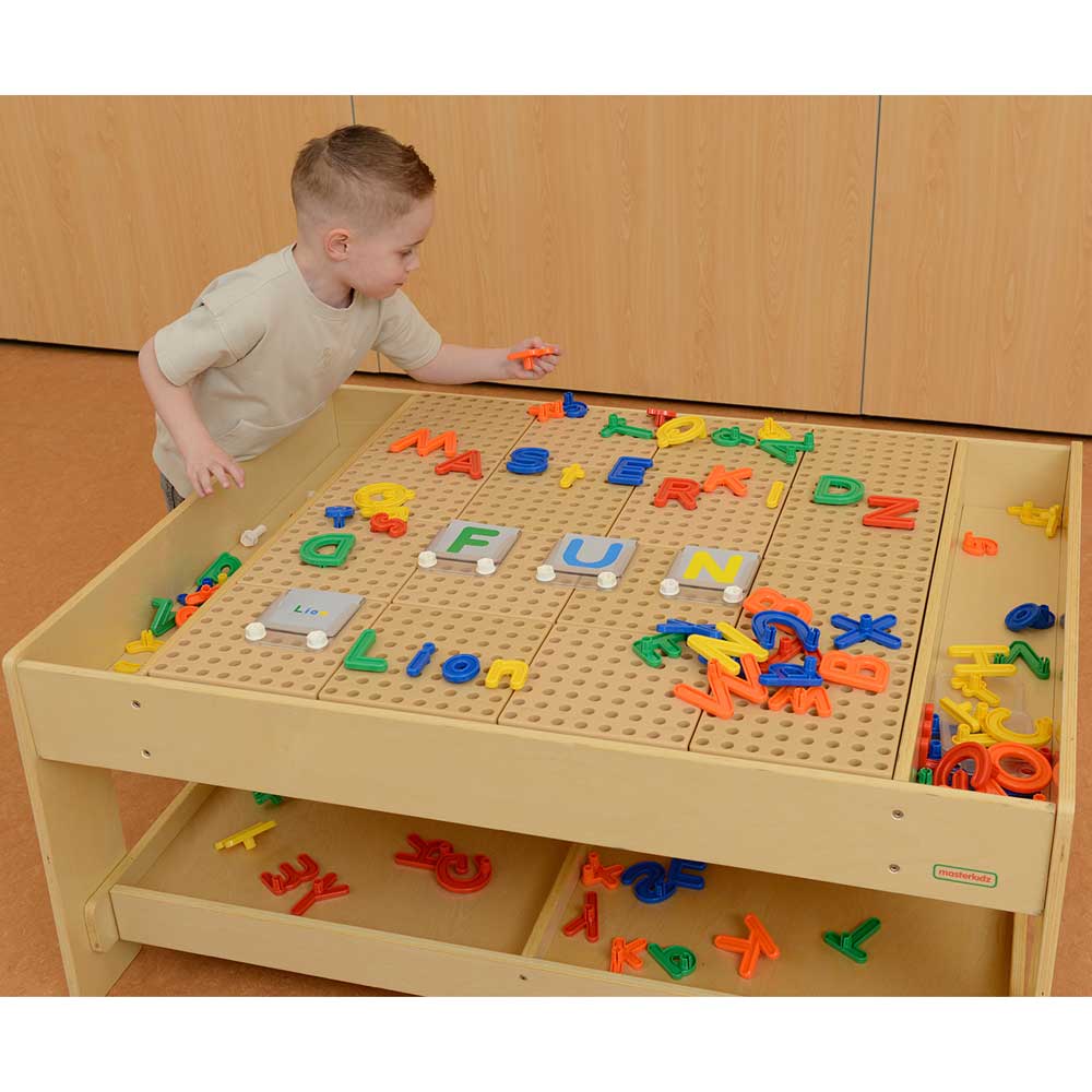 This amazing 122 piece set of letters is perfect for early learners providing both upper and lower case letters for children to identify, orientate and then push fit into any Masterkidz STEM Wall or STEM Table. There are two complete sets of uppercase letters and two sets of lowercase letters providing enough for individuals or small groups working together. Children will want to sort, arrange, make words with them and practice their pronunciation too. The pieces are colourful so enable clear separation when arranged in alphabetical order.