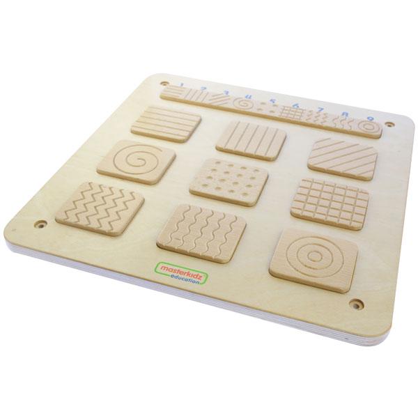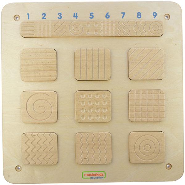 A board containing 9 different surface textures encouraging tactile training. Children will be asked to match the texture of the blocks with the texture matching bar on top of the board. Teachers can just ask the children to describe about the texture to encourage verbal expression skills. Many more different plays can be applied with this durable toy. The board can be permanently mounted on wall or flexibly used with Masterkidz Flexible Mounting System and Masterkidz Free-standing Painting Window.