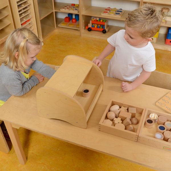 What’s inside the box? Just each in a find out. The sturdy wooden box has two holes to allow children to use both hands to guess the object inside by touch alone. As children explore they increase tactile awareness, memory, vocabulary and communication skills. Made from Russian Birch plywood. The box measures 33 x 28 x 22cm.