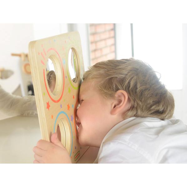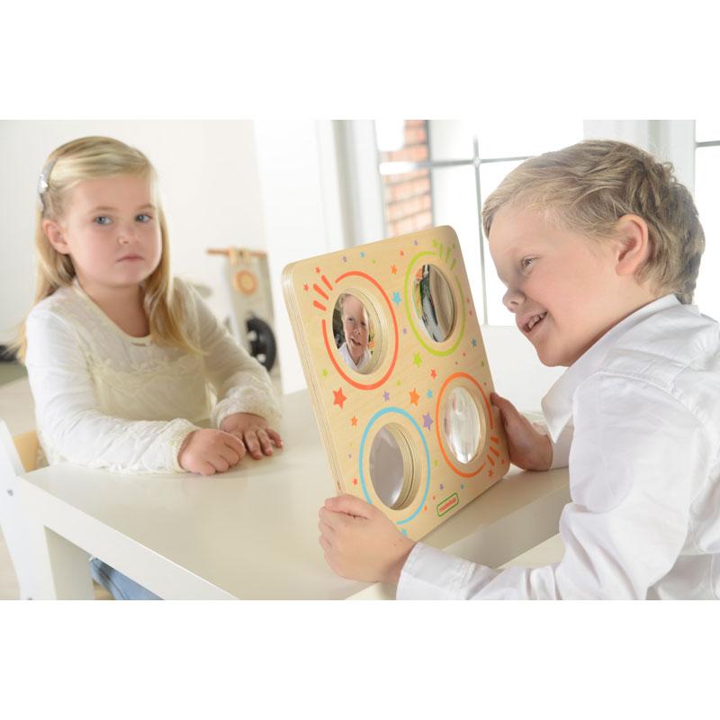 This visual experience toy consists of a concave lens, convex lens, a magnifier and a mirror. A good visual educational toy kids will have fun with.